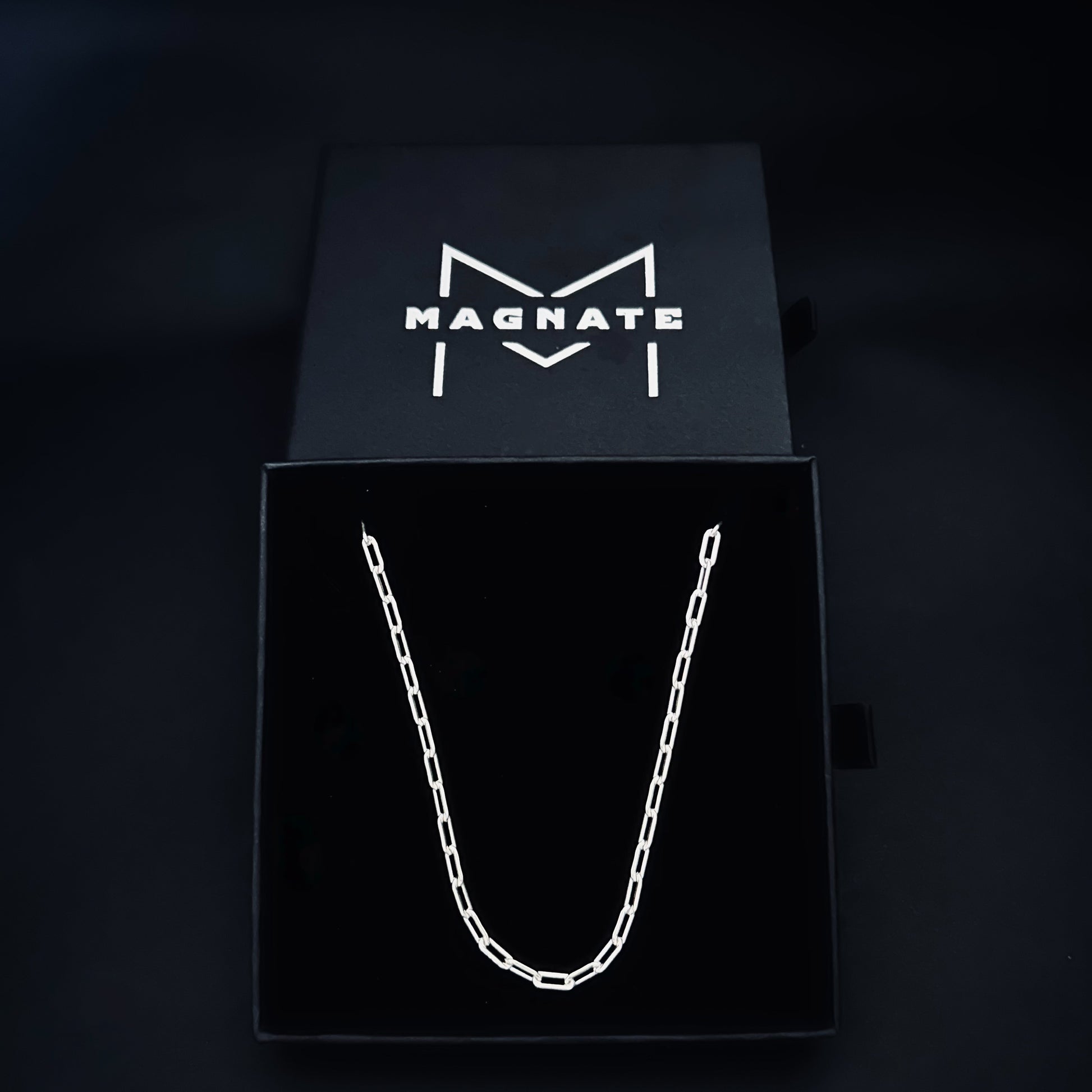 Cadena MAGNATE de Plata 925 de estilo elegante, con un diseño clásico destacándose por si sola. Es un complemento ideal para tu outfit, que te hará sentir empoderado tanto en reuniones importantes como en eventos sociales. Perfecta para uso personal o para regalar. Es de las más solicitadas.